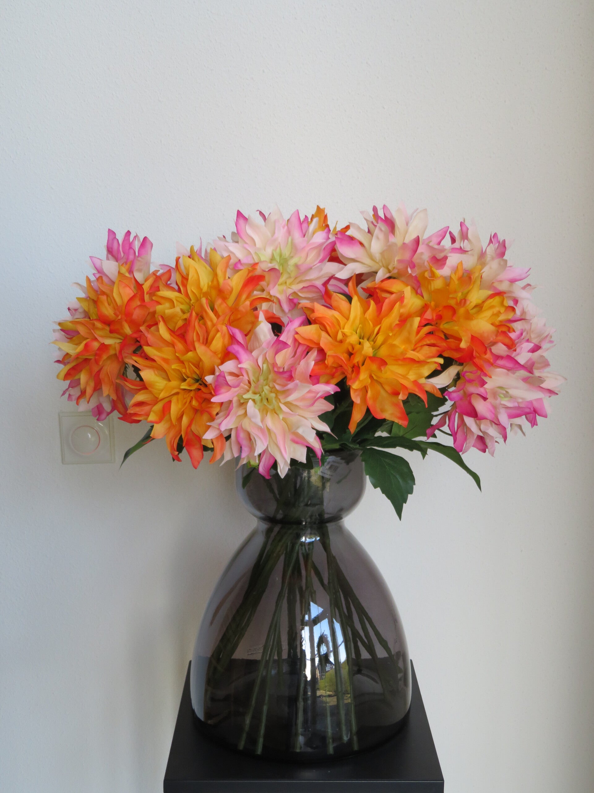 Vaas is 34 cm hoog en een maximale diameter van 27 cm