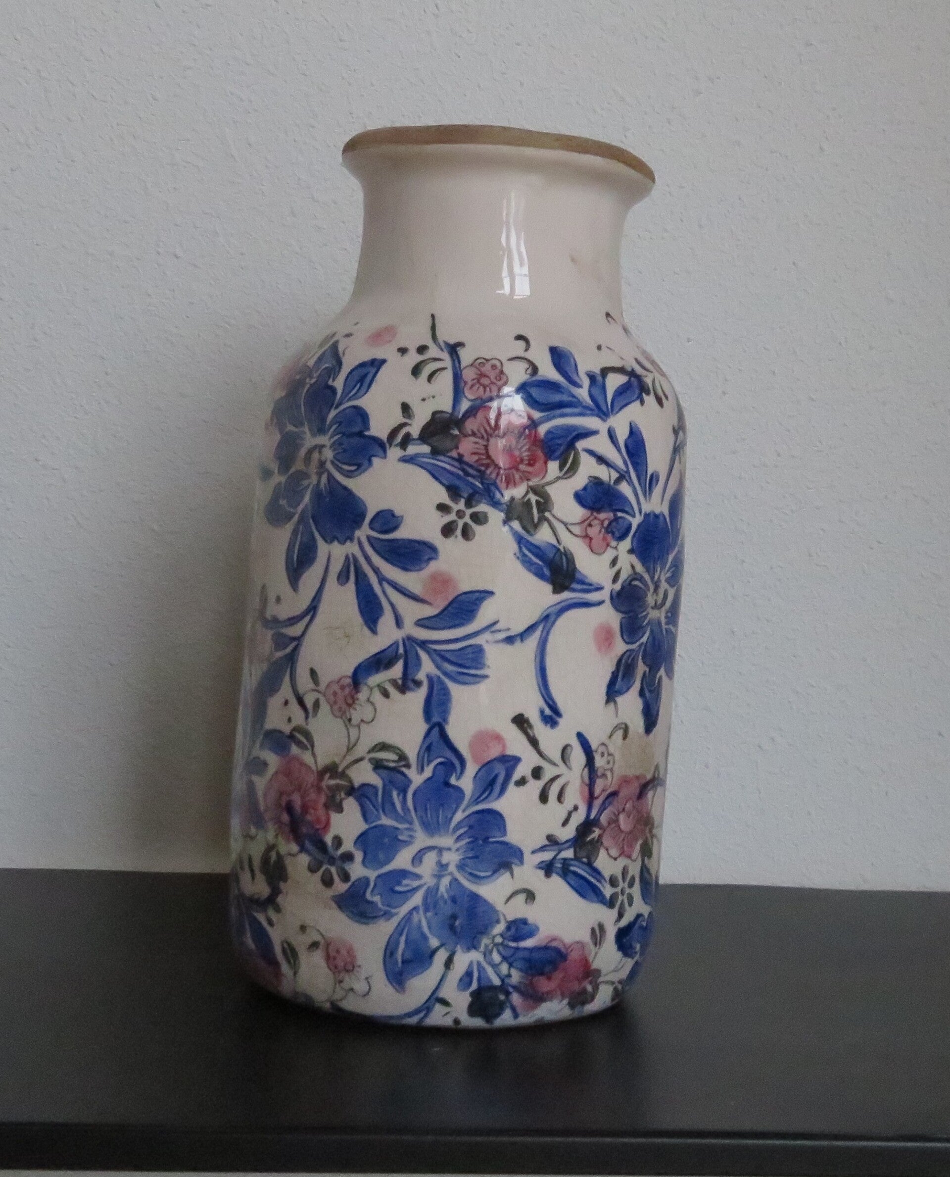 Clayre en Eef Vaas Ø 15x32 cm Beige Blauw Keramiek Bloemen