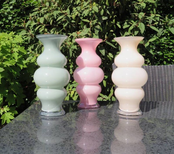 Voeg een vleugje elegantie toe aan je interieur met deze prachtige mondgeblazen vazen. Verkrijgbaar in drie stijlvolle kleuren – roze, beige en groen – vormen ze samen een speelse, maar harmonieuze set. De vazen zijn gemaakt van hoogwaardig glas en hebben een unieke organische vorm met zachte rondingen die perfect passen in zowel moderne als klassieke interieurs.
