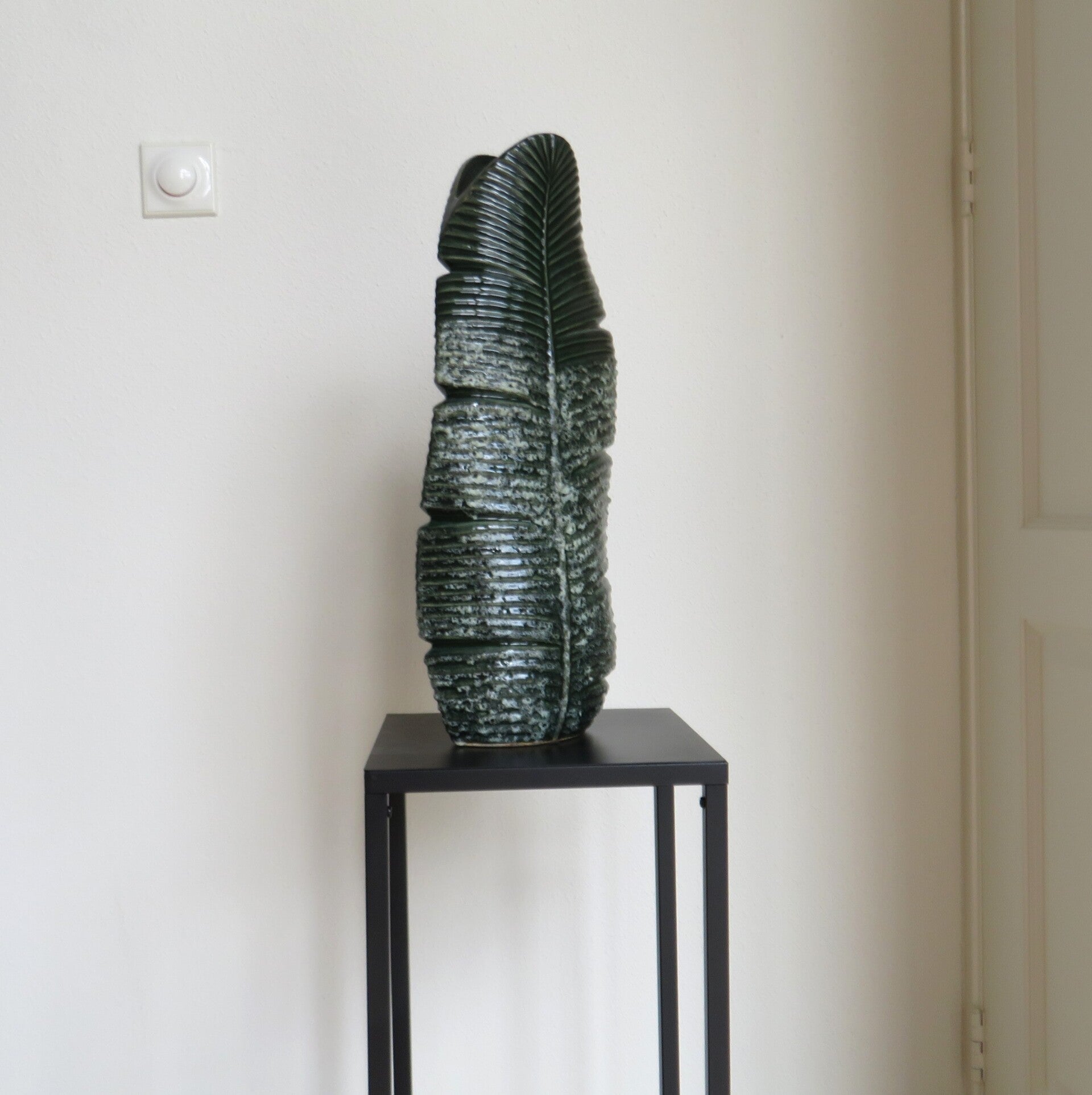 Groene Palmblad Vaas – Luxe Keramiek Vaas in Bladvorm