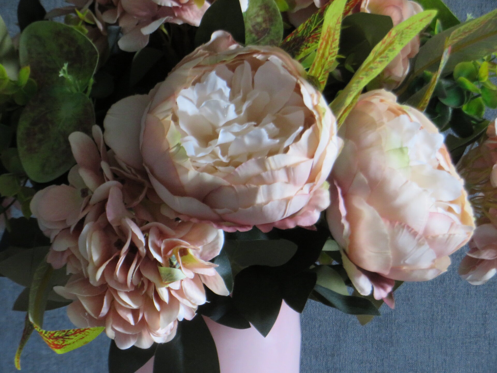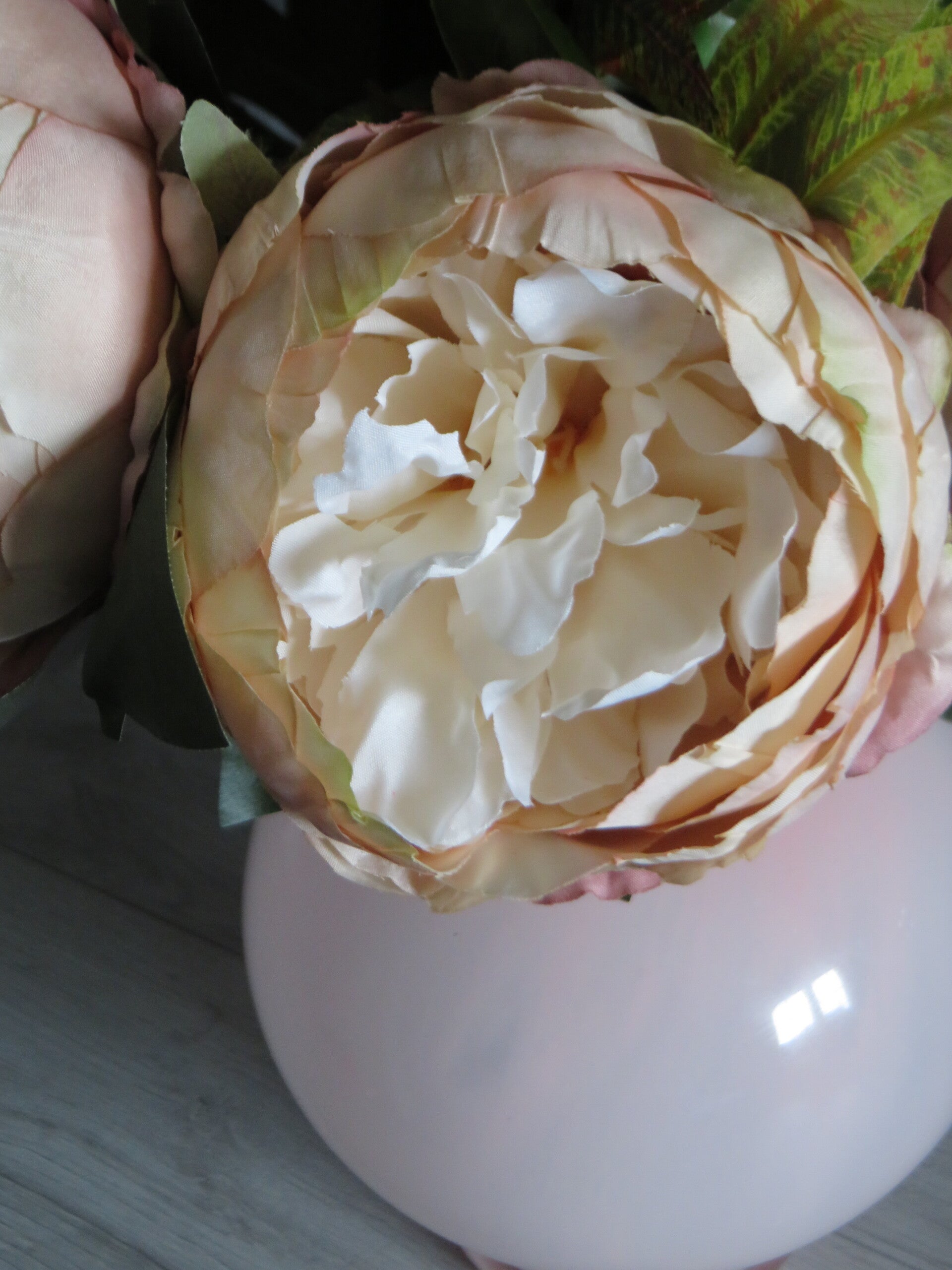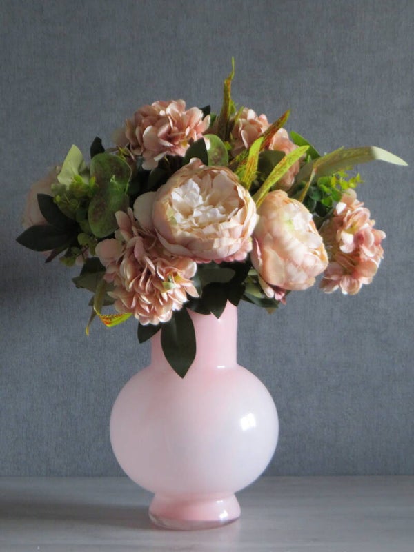 Breng warmte en elegantie in huis met dit prachtig gebonden zijden boeket van Countryfield. Zachte pioenrozen en luchtige hortensia’s in pastelroze en crème vormen samen met frisgroen blad een stijlvolle, volle compositie. Tijdloos mooi, onderhoudsvrij en perfect voor elk interieur.