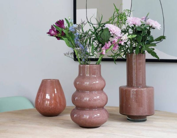 Deze collectie vazen is vervaardigd uit extra dik glas, verrijkt met subtiele luchtbellen en organische vlamstructuren. In elke ruimte zorgen ze voor een unieke sfeer, waarbij textuur, licht en kleur moeiteloos samenkomen. Elke vaas is met de hand vervaardigd en dus volkomen uniek. Verkrijgbaar in meerdere formaten en tinten, passend bij een interieur met karakter.