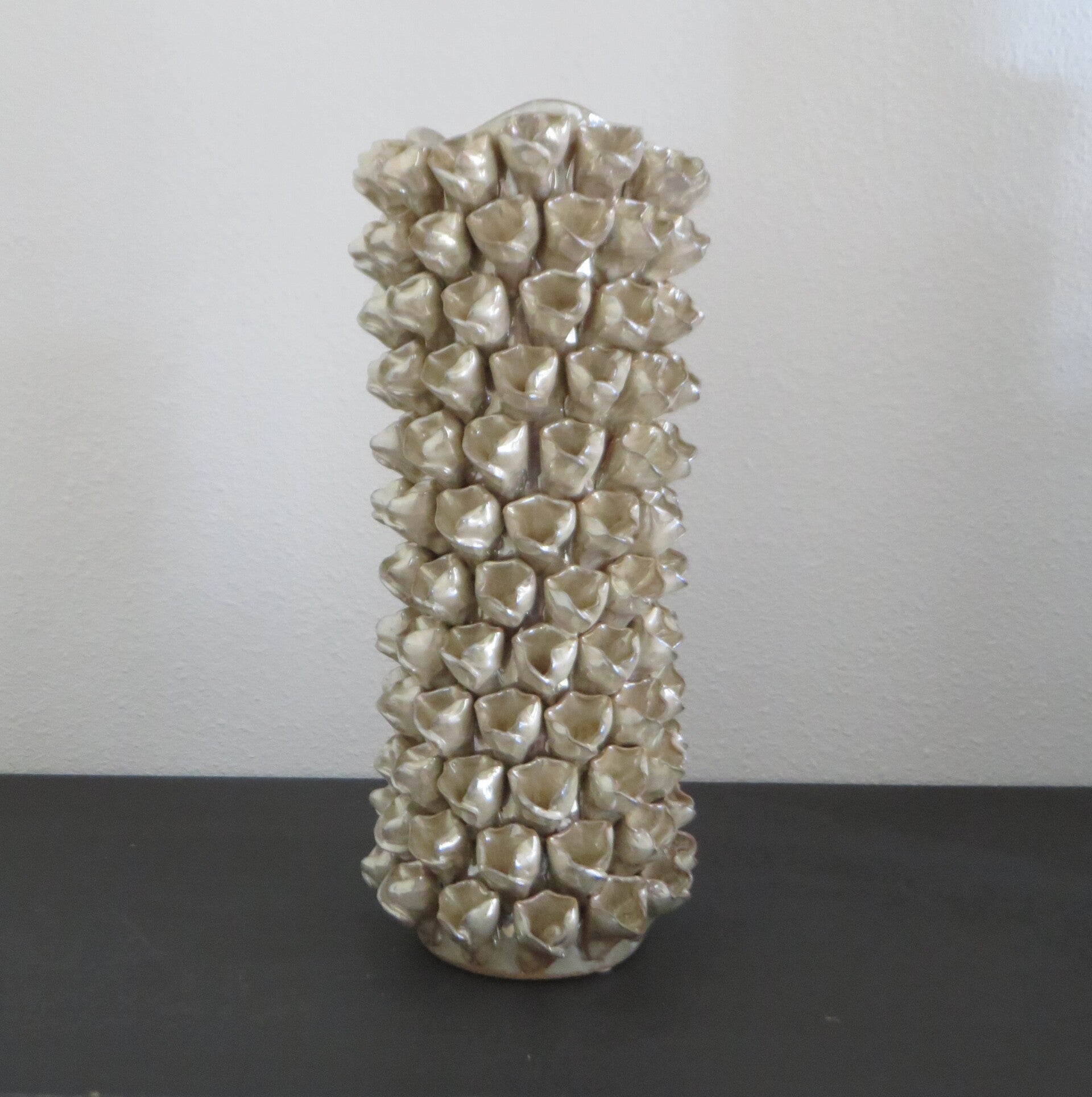 Breng luxe en karakter in je interieur met deze handgemaakte keramieken vazen. De bijzondere reliëfstructuur met bloemachtige vormen geeft de vaas een unieke uitstraling die zowel modern als tijdloos is. Verkrijgbaar in stijlvol parelmoer (pearl) en elegant roze (pink).