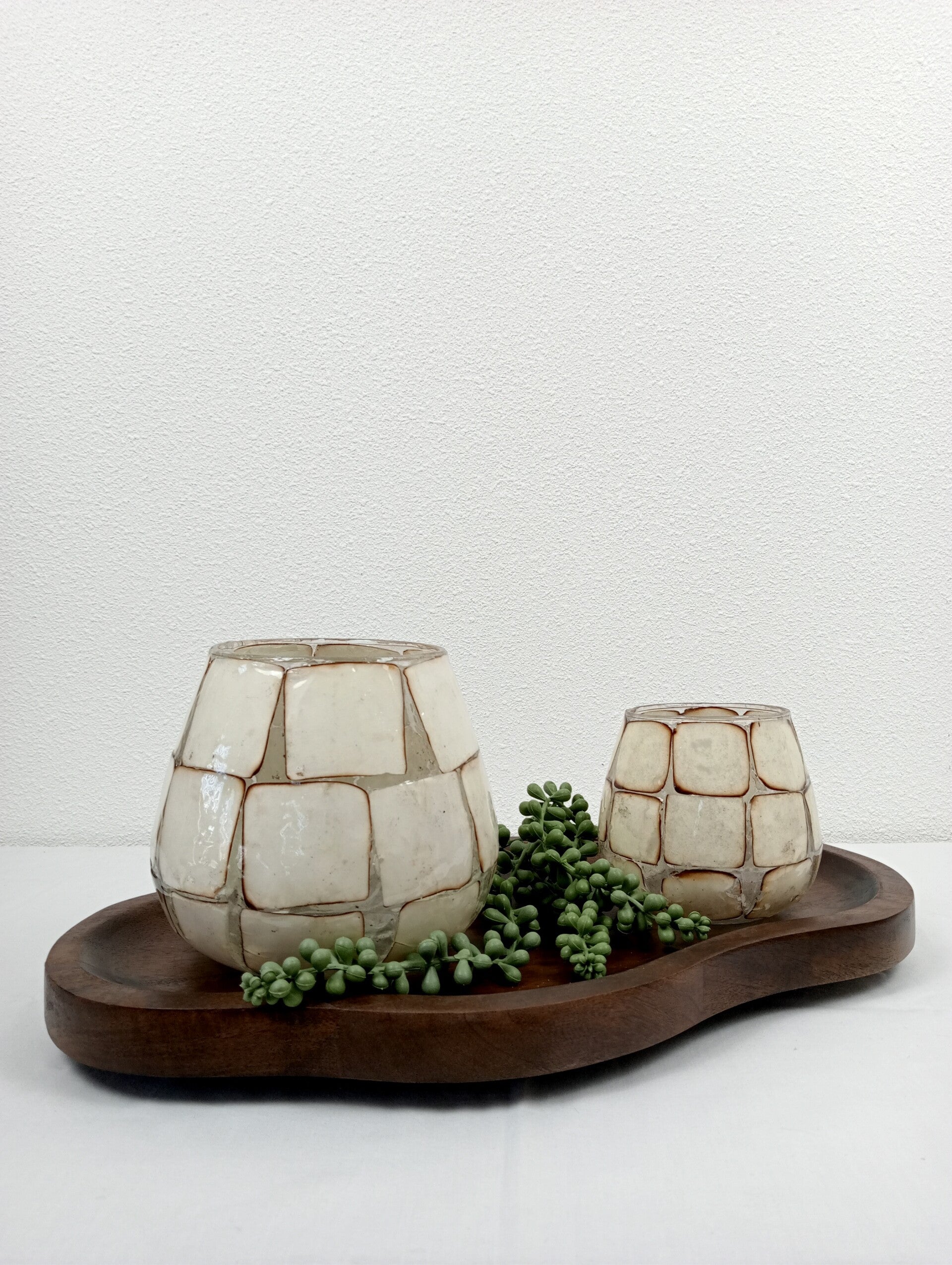 Daarop schitteren twee prachtige windlichten van Light & Living, die met hun zachte gloed elke ruimte omtoveren tot een knusse plek. De subtiele structuur van het glas zorgt voor een speels lichtspel zodra de kaarsen branden.