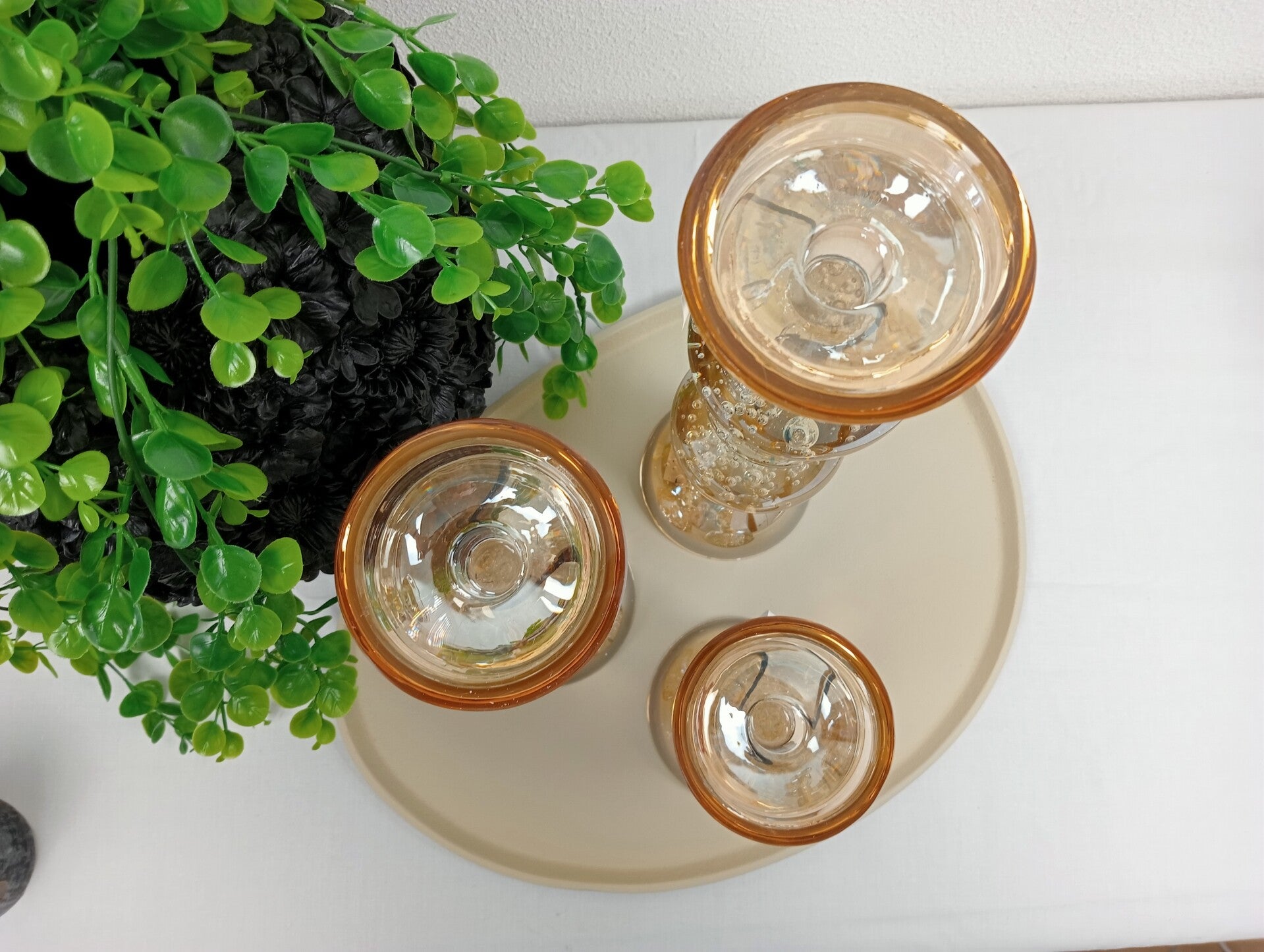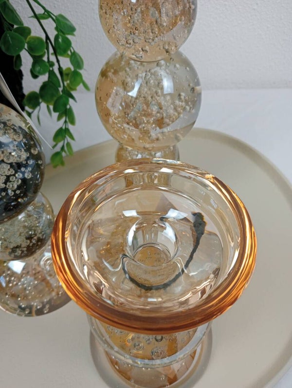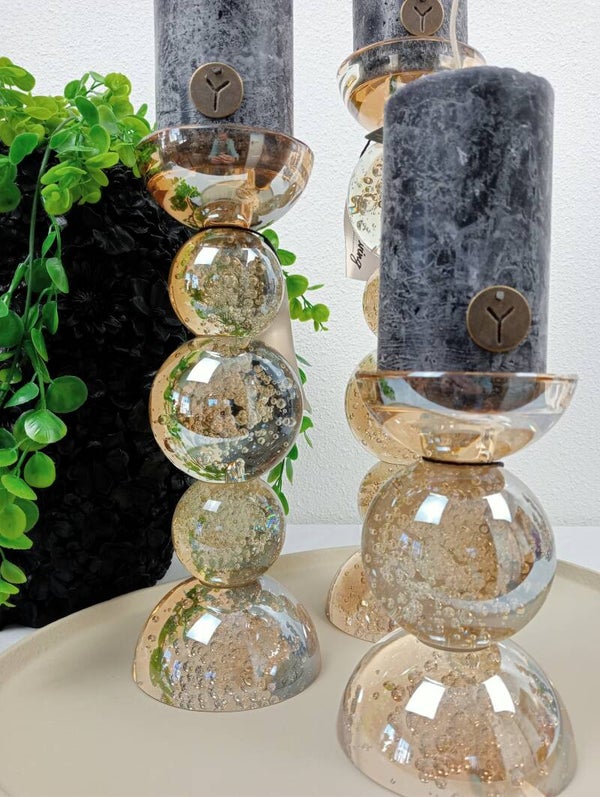 Amber Glazen Kaarsenhouders met Bubbels (16–34 cm) – Luxe Set van Light&Living voor Moederdag